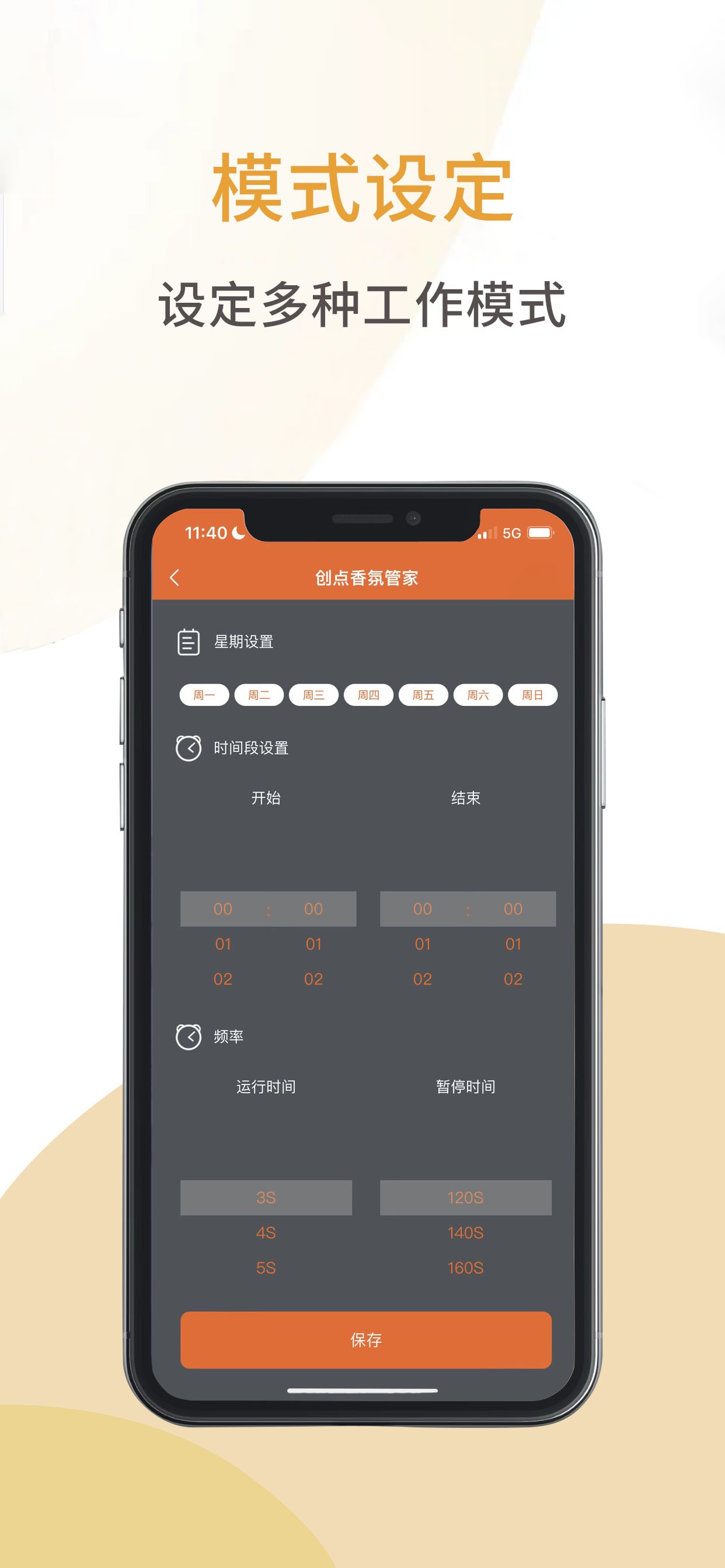 【自定義工作模式】自由設定開機工作時間,噴香節奏,滿足多場景使用。