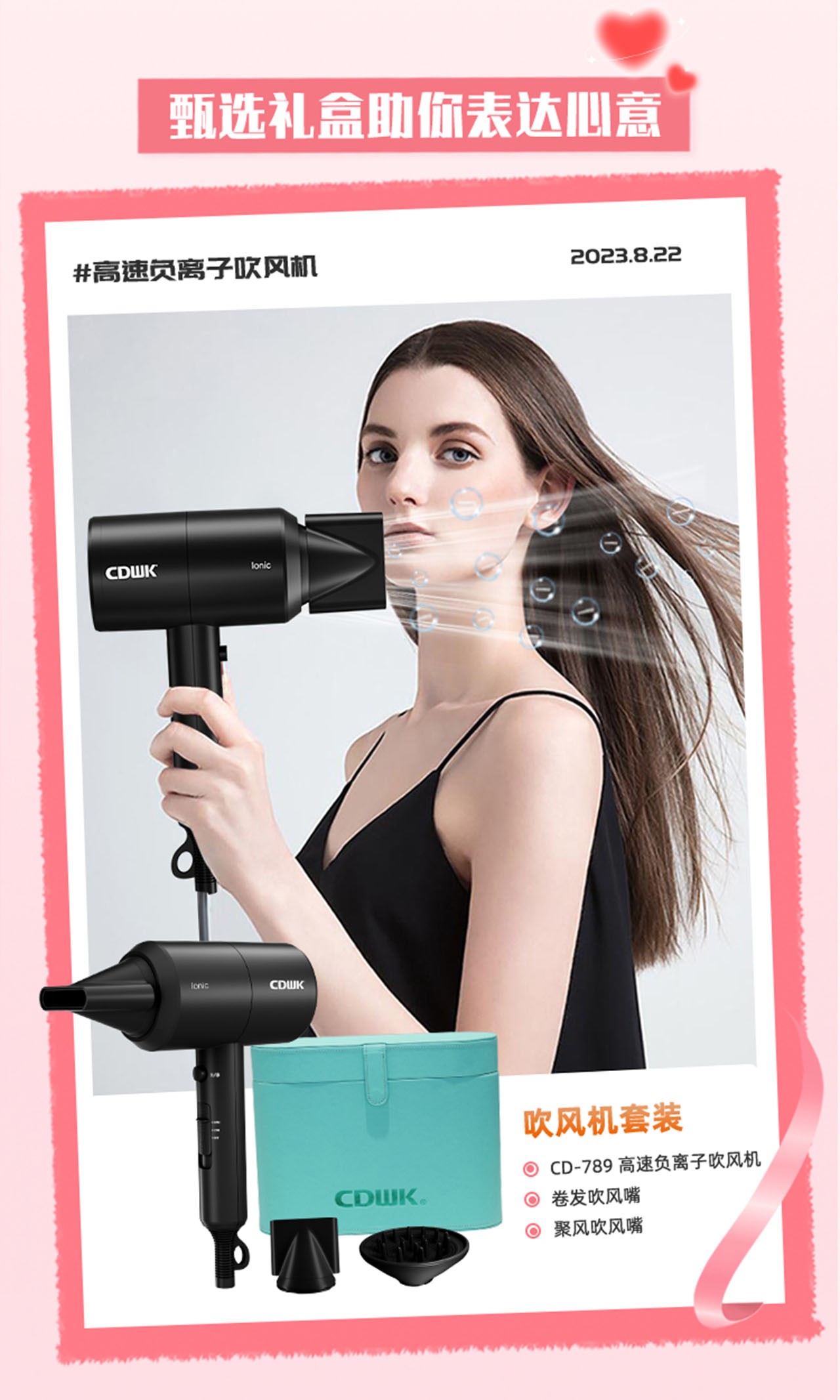 精心打造吹風機禮盒,充滿用心與關愛,給愛人送去安全、高效的吹風體驗,還有每一天的滿滿自信與魅力。